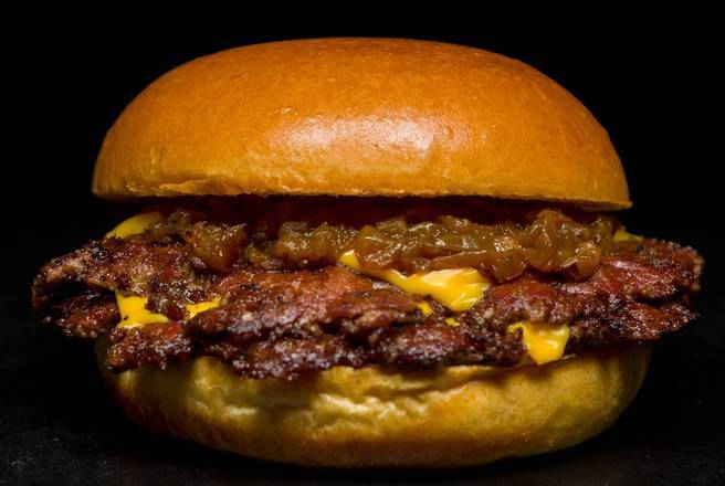 Our traditional 6oz 100% Grass-fed Canadian beef smash burger with cheddar cheese, caramelized onions, and our signature home-made mayo sauce.