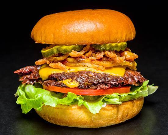 Our traditional 6oz 100% Grass-fed Canadian beef smash burger with cheddar cheese, bacon, lettuce, tomato, pickles, raw onions, and our signature home-made mayo sauce