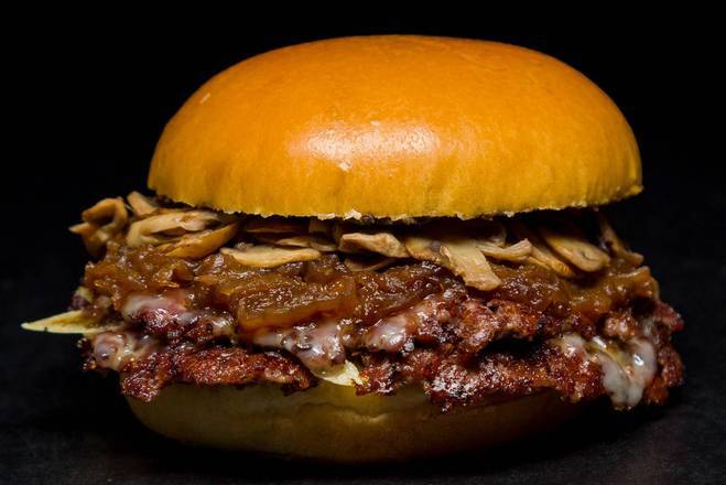 Our traditional 6oz 100% Grass-fed Canadian beef smash burger with black truffle, swiss cheese, sauteed mushrooms, caramelized onions and our signature home-made mayo sauce