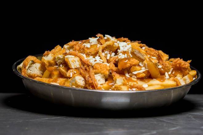 Our Poutine is made with fries, cheese curds, crispy fried onions. Served with a side of beef gravy